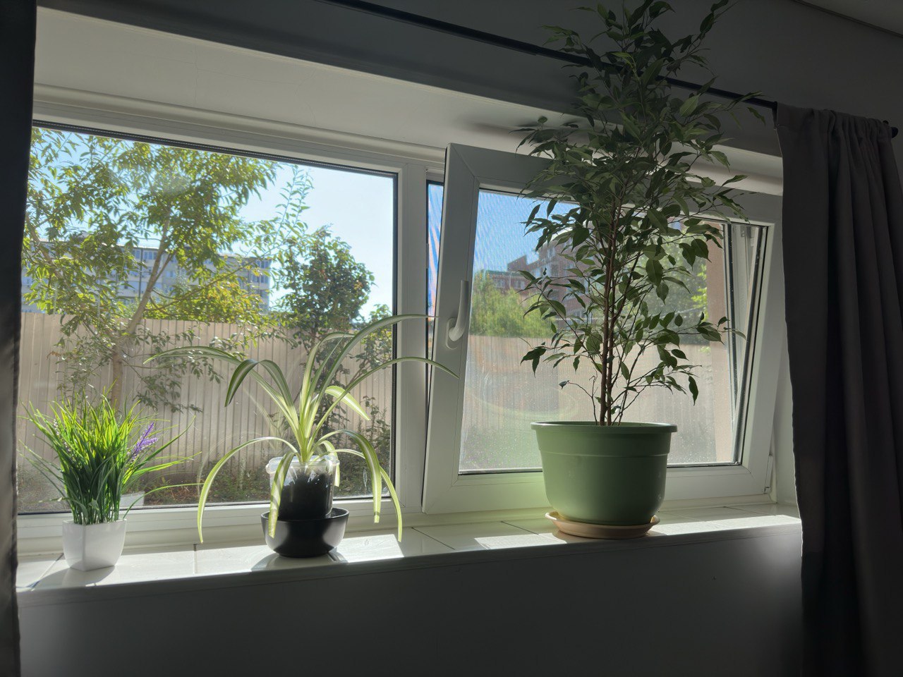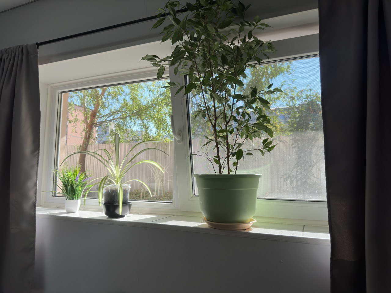 Цоколь и тень от деревьев. Окна в палисадник.